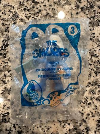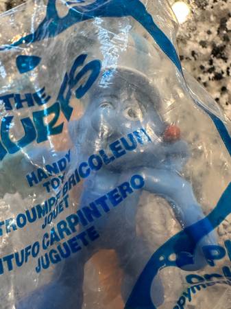 The Smurfs: Handy Smurf McDonald's Happy Meal Toy In Original Packaging, Never Opened Approx. 3" Tall In Person, Cash Sale Only Must Pick-Up, No Shipping or Delivery