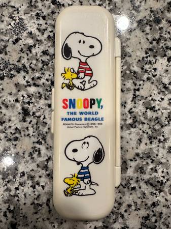 Snoopy, The World Famous Beagle Child's Chop Sticks and Spoon in Case By: United Feature Syndicate, Inc/Peanuts Chop Sticks, Spoon Handle, and Case are Plastic Spoon Bowl is Metal In Very Good...