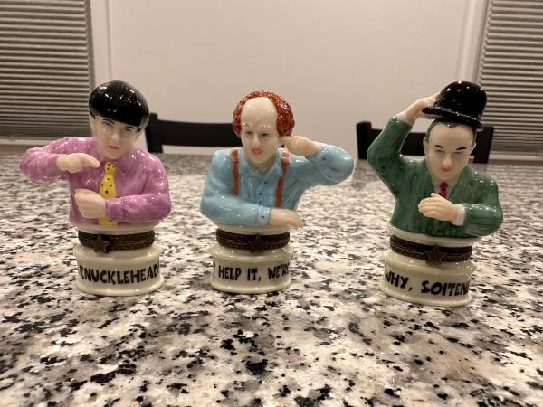 The Three Stooges Porcelain, Hinged Trinket Boxes, 1999
