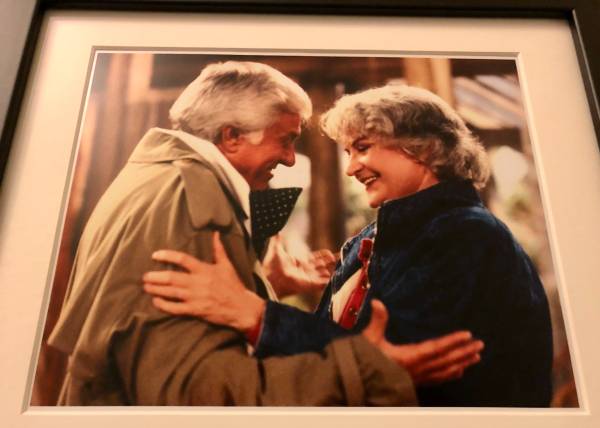 This is a professionally framed display of Bea Arthur and Dick Van Dyke from the famous and popular show "The Golden Girls." The Golden Girls show ran from 1985-1992.