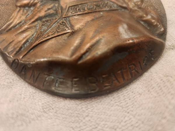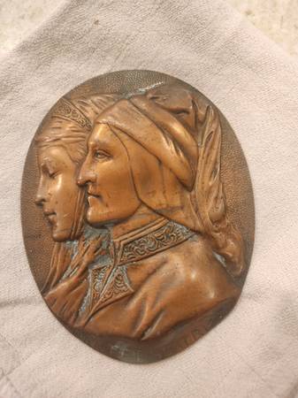 Vintage Wall plaque relief of Dante & Beatrice. In very good condition, has patina. Size is 5 1/2 " x 4 1/4 ".