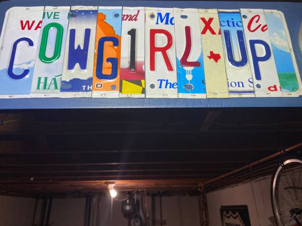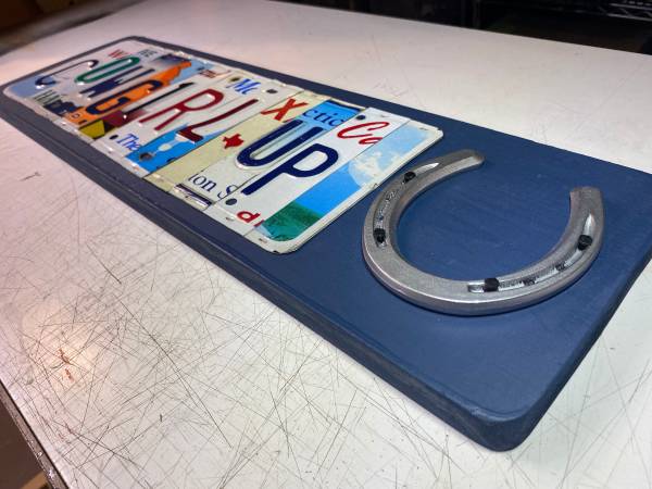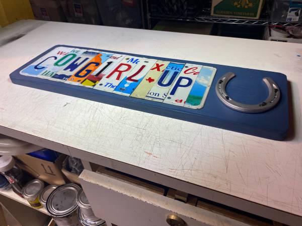 COWGIRL UP with HORSESHOE hand crafted license plate sign - $75 (West Suffield)