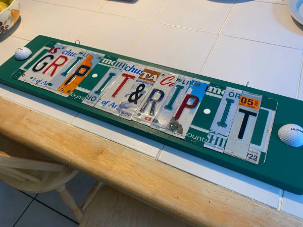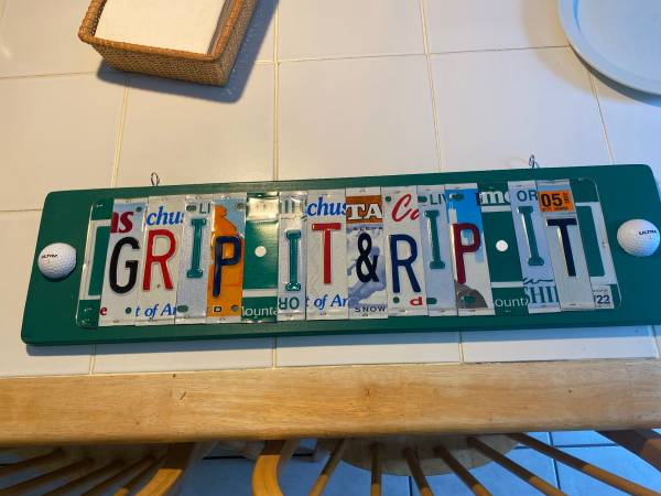 Old license plate GOLF sign "GRIP-IT&RIP-IT" - $75 (West Suffield)