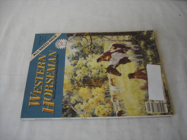 Western Horseman Magazine, October 1986, Vol. 51, No. 10. Collector’s 50th Anniversary Edition. Published by Western Horseman, Inc. Magazine is in excellent condition, bright, crisp, tight, no creases, corners are sharp, no marking or annotations. Magazine shows slight shelf-wear. Mailing label address is covered temporarily to protect the name of the original owner.