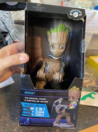 Groot cell phone holder and game controller holder, by Marvel Studios, The INFINITY SAGA, NEW in box, with cables,