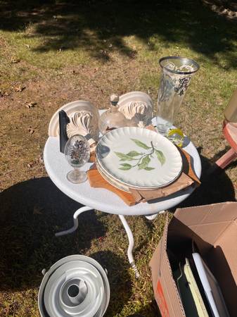 Household items + Records/CDs + Books + Art + Clothes + Dishware + Furniture + Art + Antiques
