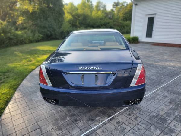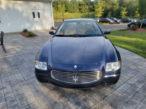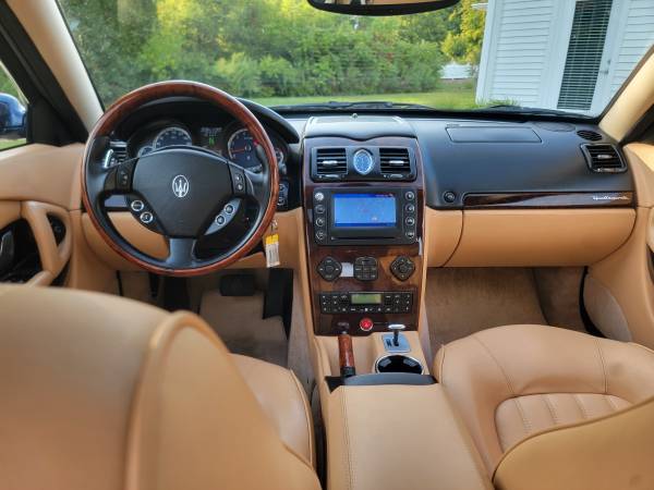 I have posted for sale my 2006 Maserati Quattroporte Sport Sedan. Garage kept and has never seen winter driving. The vehicle has been maintained on a regular schedule with service intervals. I performed most of the scheduled service to the vehicle myself. The vehicle looks brand new and drives the same way. The vehicle looks and drives like a car with 40,000 miles. The vehicle requires no additional service at the time of sale. This is a private sale. This vehicle is offered with 40,000 original miles. This Maserati is equipped with Rear Wheel Drive. The Maserati is show in Blu Sebring Metallic exterior with Cashmere leather interior. The Maserati if featured with Capaccino Brown burled wood trim on the dash and door trims. The vehicle shows in excellent condition for the years and miles. This vehicle is a two-owner vehicle with a clean title. This vehicle is offered with a 6-speed DuoSelect Ferrari F1 sequential manual with an automatic transmission. The Vehicle is equipped with factory F1 paddle shifters on the steering wheel. This particular Quattroporte has a number of additional great features included in this vehicle optioned with power sunroof, navigation, 12-way power leather seats, heated power seats, heated steering wheel, power windows, power window screens, keyless entry, cruise, 10 speaker premium sound system, 18' sport alloy wheels, power heated mirrors, fog lights, and auto climate control. This Maserati is offered with the Skyhook adaptive damping suspension. The Maserati is powered by a 4.2L 8-cylinder Ferrari built motor offering 395 hp. The safety features include park assist, ABS, stability control, and front & side airbags. This was a Non-Smokers Car. Factory Red Maserati calipers are on all four wheels. Brakes and rotors on the front wheels are Brembo 360mm 6-piston and 330mm 4-piston in the rear. The front brakes are 70% new and the rear brakes are brand new. There are four matching All Season Tires installed on the vehicle. The vehicle had a recent oil change just prior to offering the vehicle for sale. Looks and drives great without any issues or need of service. The interior is very clean, and the seating is in new condition. There is no tears, stains, or wear to the interior throughout the car. All the power feature work as new and the heat & A/C work efficiently. The exterior is new with a couple of very small imperfections; the car looks like new throughout. The vehicle averages almost 16 mpg in normal everyday driving. The vehicle is mechanically sound with no issues or service issues...Unbelievable vehicle to own and drive if you love cars!!!