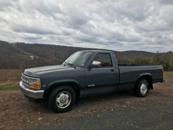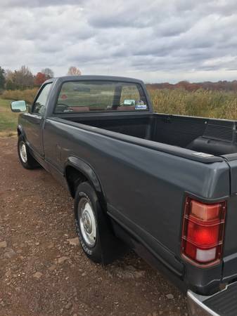 1991 Dodge Dakota, 2-wheel-drive (4×2), regular cab pickup, light-duty (≈½-ton) with the 3.9L V6, built at Warren Truck Assembly in Michigan.