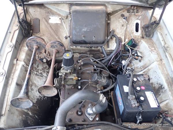 Body-wise, she is very solid. The Sea Mist Grey paint definitely needs attention but as a neat convertible cruiser that possibly 5% of those who see her will know what she is, that can be overlooked, at least for the time being. There is a very small non structural hole in the passenger floor.