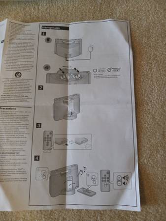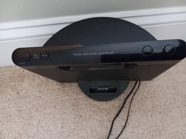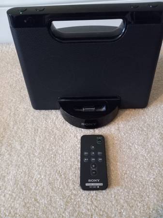 Sony Personal Audio Docking System, comes with remote, and instruction booklet, great sound, option to use AAA batteries in addition to plug in feature. Measures 7 inches tall x 9 inches wide x 4 inches deep. Smoke/pet free home. Cash only. Pick up in Granby, CT.