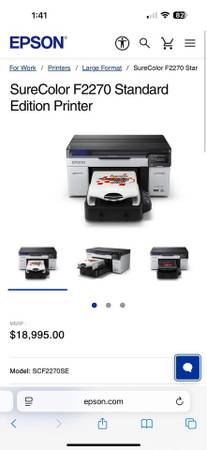 Selling my Epson SC-F2270 DTG/DTF Printer, purchased new Nov 2024. Printer only has 107 prints and has barely been used. Maintenance is up to date . Still in like-new condition and under full warranty through Nov 2025 with Epson + DTG Connection.