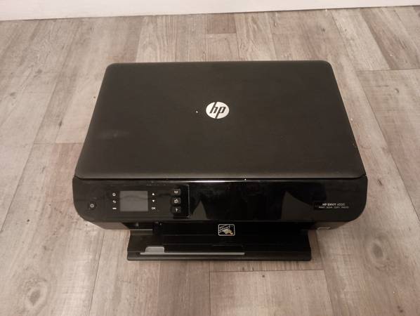 HP ENVY 4500 is an e-All-in-One printer that prints, copies, scans, and handles photos, featuring wireless connectivity and auto duplex (two-sided) printing. It uses HP's thermal inkjet technology to print at speeds of up to 8.8 ppm in black and 5.2 ppm in color, supports borderless printing, and can print from smartphones and tablets via Wi-Fi. The device utilizes a two-cartridge system (one black, one tricolor) for ink and is compatible with a 100-sheet input tray.