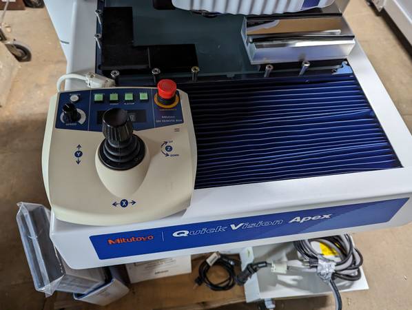 Selling a 2010 Mitutoyo Apex Quick Vision CNC Vision Measuring Machine. This unit is complete and fully operational. Sale includes all original documents, software. QVPAK V7.5/E Software. Original Declaration of Conformity, Smart Profile Guide, Smart Features Guide, User's Manual, QVREMOTE-2C; Part Number: 02APS880, (Joystick), Mitutoyo Power Supply Unit 600. Unit features a QV Objective; 1X/0.055, 1=100. Made in Japan in 2010.