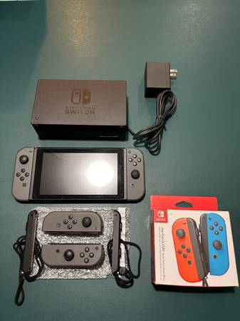 - Nintendo Switch Console (Grey) with all accessories but no original box (dock, USB-C charger, original Joy Cons)