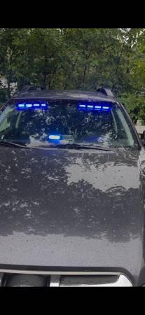 Blue visor lights and dash light and also red and blue rear window light