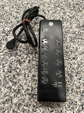 2 Outlet Power Strip Surge Protectors 1. Master Electrician - 5 Outlets, Extra Long Chord - Over 14' Long 2. GE - 10 Outlets, 2 USB Charging Ports, Chord - Over 5' Long Priced and Sold as a Pair...