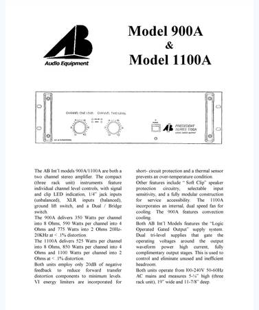 AB International Precedent Series 900A Power Amp, designed for professional audio use. This power amplifier features two channels and two inputs, with TRS/Audio Jack and XLR audio inputs for versatile connectivity. The amplifier is also bridgeable and rack mountable, making it easy to integrate into your setup.