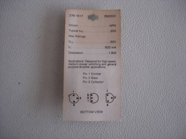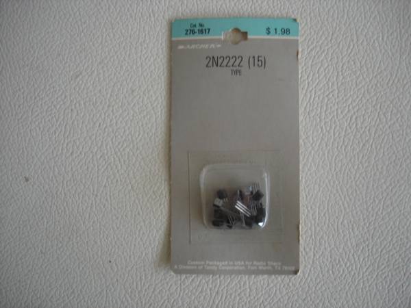 Archer Electronic Part – 2N2222 (15). Cat No. 276-1617. In original package from back in the day. I have only one package or unit available to sell. Fifteen units in the package.