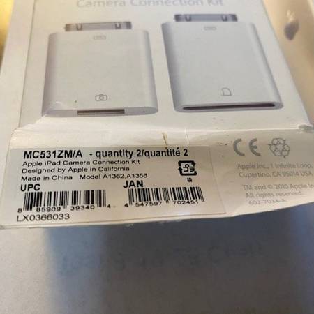 3 Different Apple Accessories adapters and cables. For loading san disk from camera .