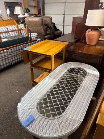 • Small end tables, coffee tables, and wooden chairs