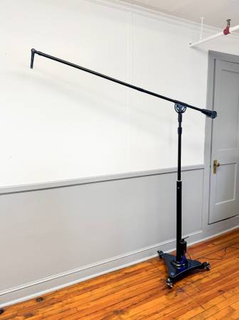 Our heaviest motorized stand with extended 62 inch boom & removable Casters. 50" to 77" Height with 12" motorized travel, up or down with just the touch of a button. Model RS-2 is the choice of many recording studios that require a stand that will handle heavy microphones with extended boom length. (microphone not included) Comes with a RF 433 Mhz Wireless controller. (style of RF receiver may vary from picture) The RF receiver is generally placed on a wall near a power outlet. An extension wire is run over to the stands power jack.