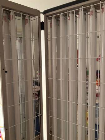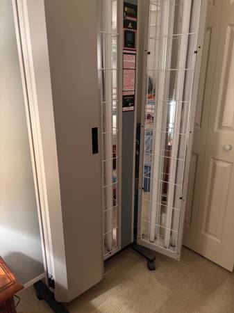 Panosol 3D Full-body high output narrowband UVB treatment lightbox from National Biological. Safe & effective phototherapy for psoriasis, vitiligo, and other skin diseases. Same Narrowband UVB wavelength range as in the doctor's office. For use in the privacy of your home. Requires prescription from doctor for a code to power lights. (Used in my smoke free / pet free home for 6 months.) Treats entire body. Controlled Prescription Timer. $4,895 when bought. Doors close for easy storage and lamp protection. Approximately 81" tall x 30" wide closed. 8" deep / 17" deep with wheels on. 113 lbs. Requires 2 strong men to lift into your truck. Pick up Stafford Ave, Bristol, CT Cash only (no bills over $20 please).