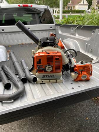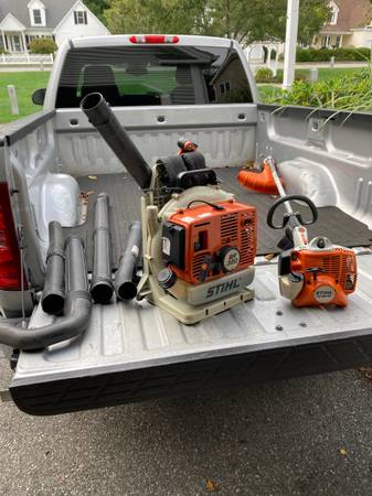 **FS 56 RC TRIMMER ***STRAIGHT SHAFT WEED WACKER / TRIMMER *** EASY ADJUSTABLE FRONT HANDLE *** 2 STRING EASY SPOOL CUTTER *** 2 CYCLE ENGINE *** SHOULDER STRAP *** IN EXCELLENT CONDITION *** ASKING $165.00 *** **** *** STIHL BR 320 BACK PACK BLOWER*** 2 CYCLE ENGINE *** ALSO IN EXCELLENT WORKING CONDITION *** ASKING $ 165. 00 *** ALSO HAVE A ROOF GUTTER TUBE THAT WORKS WITH BLOWER TO BLOW GUTTERS CLEAN *** EFFECTIVELY CLEANS LEAVES , STICKS AND DEBRIS *** WITHOUT GETTING ON A LADDER *** ASKING $ 30.00 *** CALL BOB ** TWO- ZERO -THREE-- 631-- ZERO - TWO - THREE - FOUR *** MAKE A OFFER * LEAVE A NUMBER * I WILL RETURN ALL CALLS