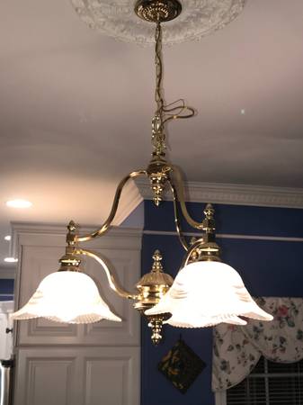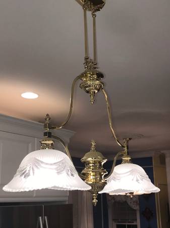 I have two(2) brass light fixtures with frosted shades.One was used over an island and the other was over a kitchen table.Both were special order when purchased and not used very long.I would like...