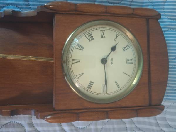 Worked yeats ago when put in storage. Had old plug & wiring but works. Has a pendulum. Maple wood and glass in great shape.
