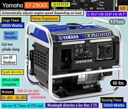 Yamaha EF2800i Inverter Generator (4.5hrs)made in Japan - $699