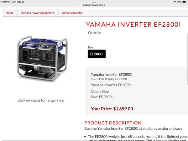 Before you go buy some harbor freight Chinese speed predator you might find the reputation of these Japanese made generators is beyond reproach and worth considering in comparison to the cost of a new Chinese Clone