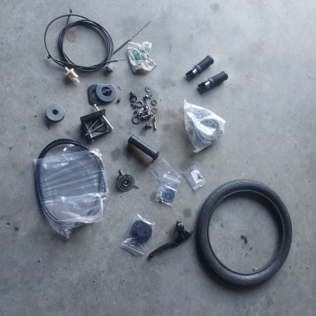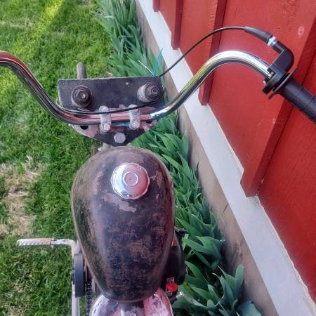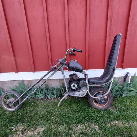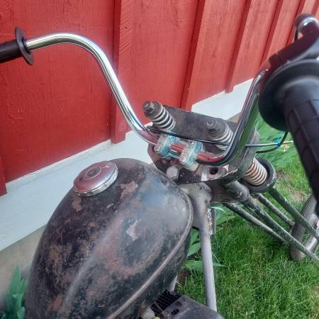 This 70s mini bike custom chopper project is 90% complete. Motor runs nicely has brand new jack shaft with 2 new bearings and sprockets, 2 new brake cables, 2 new axles, new clutch, throttle assembley, 3 new cables, new kill switch, front tire, handle bars, Brake pads look new and the frame is sandblasted and ready for paint. Just needs time and finishing touches. Comes with a bag of extra parts seen in photo. 1st $395.oo firm takes everything Call or text Jim @ show contact info