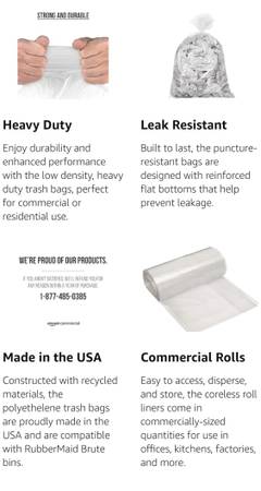 AmazonCommercial 95 Gallon Trash Bags 61" x 68" - 1.5 MIL Clear Commercial Garbage Bags - 10 Count