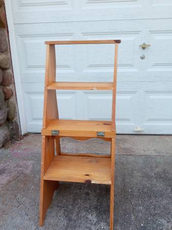 It is made of wood and is good quality. It is in good condition but does have some scratches from use. The chair is a little small and meant for a kid. It is 34 inches tall and 15 inches wide.