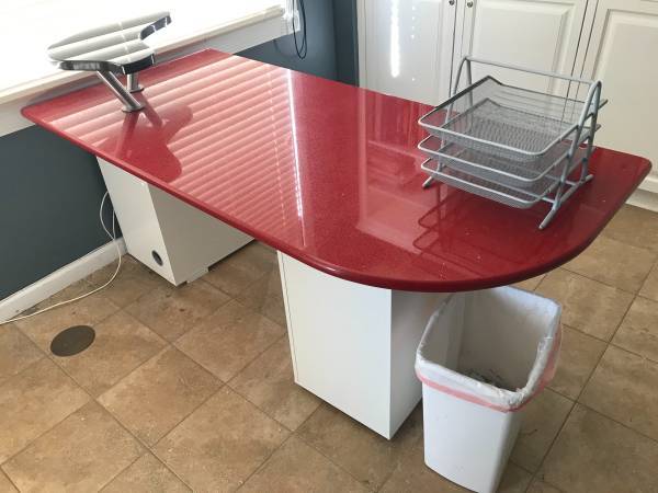 Red Quartz Desk Surface Top Quartz Desk Top With Monitor / Laptop / TV Stand 69”x32” Cabinets not included.