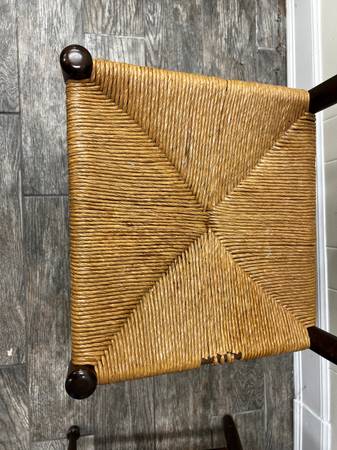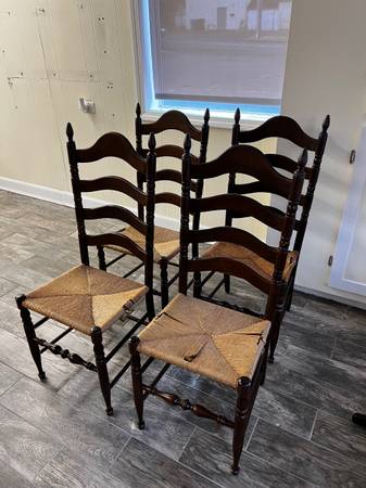 (4) Wooden Ladderback Chairs with Woven Rush Seats -Rush Seats need Repairs - see photos -41-1/2" (Overall Chair height) Please review all photos, as they are oart of the description