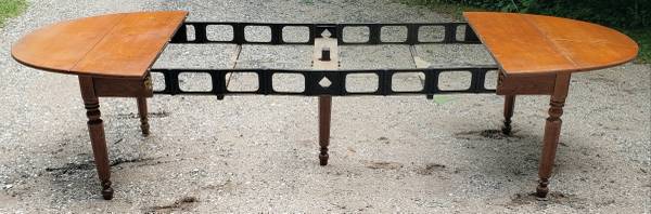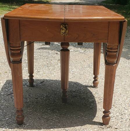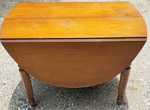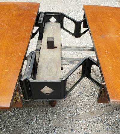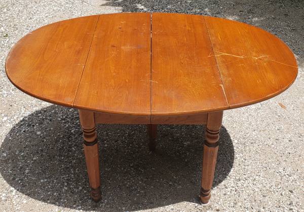 Unique Vintage / Antique Oak Dropleaf Dinning Table with 5 Legs For Sale , it's in decent condition with some nicks , scuffs , scratches and ware from use over the years , it messages appropriately 59" long with the both leafs opened by 44" wide by 30¾" high , unfortunately I don't have the leafs but this table will expandto 10' , I'm only asking $45.00 for it AS IS and believe this is a more then fair and reasonable price ..........