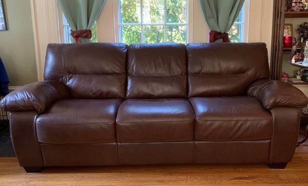 Large brown leather sofa manufactured by Natuzzi Editions. Hardly used and in excellent condition.