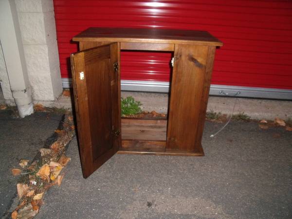 Wood aquarium stand will hold a ten gallon or 20 gallon tall fish tank and maybe larger depending on the tank design. Cabinet on bottom to hold supplies. Good shape. Dimensions are 26"L x 14"W x...