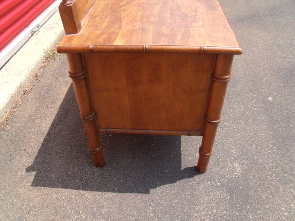 Beautiful chest reminiscent of fine Tommy Bahama Carribean Island styling. Normally used as a bed foot-locker but would also make a great coffee table. Also perfect to hold your large screen TV and has drawers to hold remotes, games, movies, etc. However you decide to use this piece in your home it will enhance any room. Made by Stanley furniture Co. Dimensions are 48"L x 20"W x 24"H. Good condition.