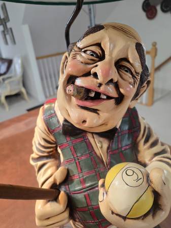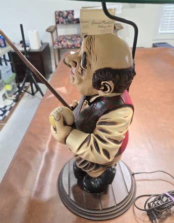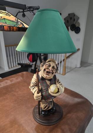 Lamp with shade is approx. 35” X 18” Believe it’s Resin Great for Office or Game Room Phone