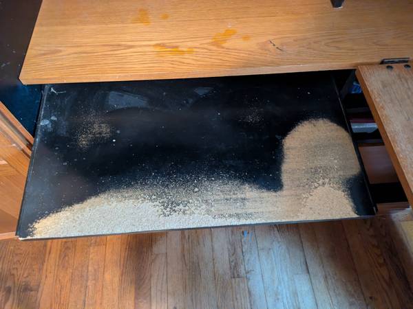It is in fairly good shape but does need a little TLC. The keyboard tray is very worn but works fine.