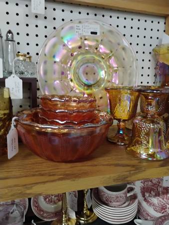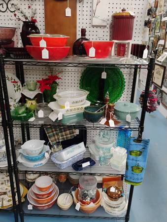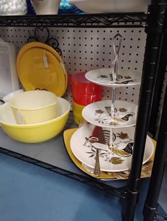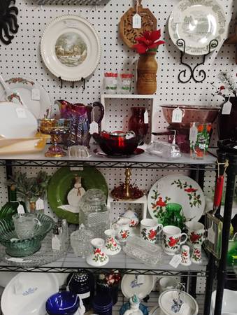 Lots of beautiful dishes, platters, bowls and decor your holiday needs.