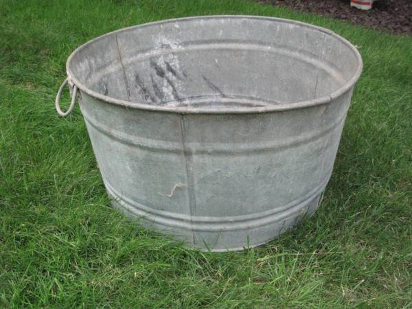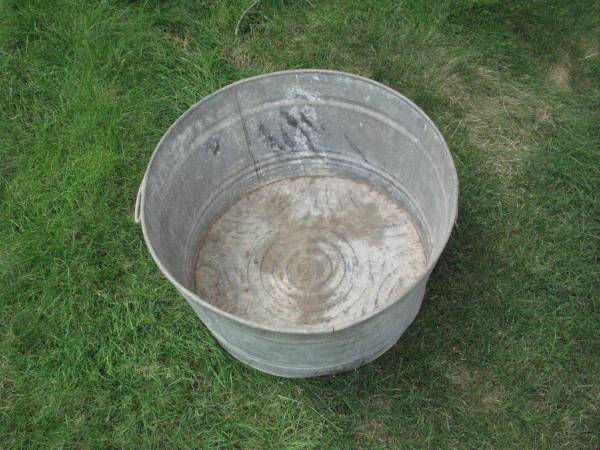 Buckets is 25" dia x 11"deep in good condition. Can be used as a planter or for storage. $25.00.