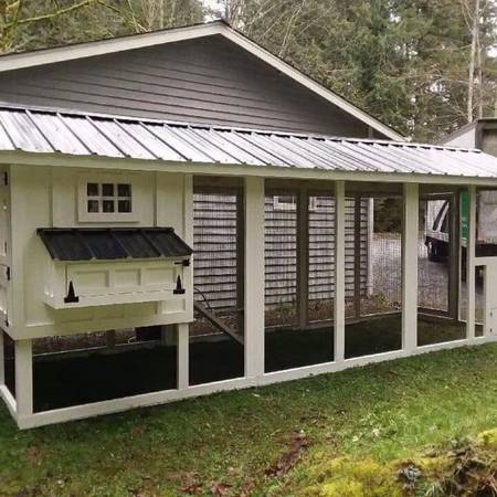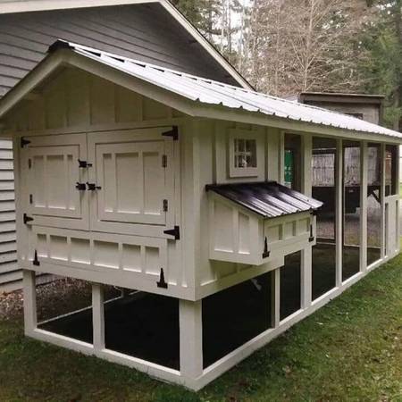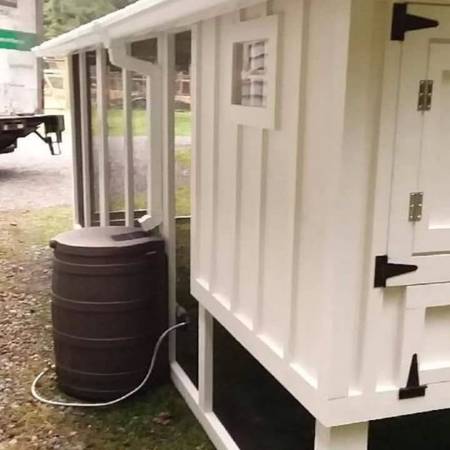 this classic 6'×18' Chicken Coop. It has board and batten siding, a chicken run door and a rain barrel watering system. So everyone knows, we do offer turn key services and we ship and Deliver our...