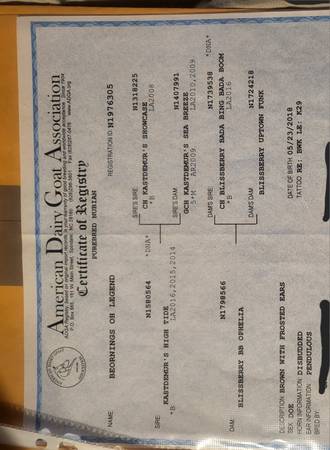 Chicory- Reg. Nubian doe. Nice girl. Very friendly. AGDA papers. I bought her in the spring. Due to personal reasons have decided to downsize, sell the bucks and won't be breeding this year. She needs to go somewhere she can be useful. She is NOT related to any of the bucks $300