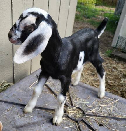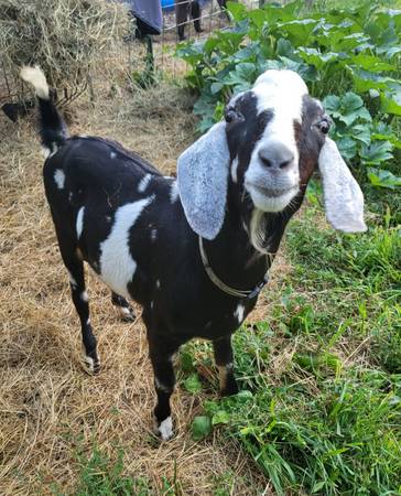 BOAZ. -1.5yr old Nubian Buck. Black and white. Shy but friendly. From milking lines. $300