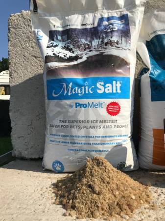 Magic Salt is a highly efficient solid granular deicer effective down to -25F. Magic Salt effectiveness allows you to use 30%- 50% less when compared to Rock Salt and is less corrosive. It is also biodegradable and environmentally friendly. Safer to use on concrete and will not harm curbside grassed areas or plants when used as directed. Magic Salt is Pet Safe and is EPA certified.