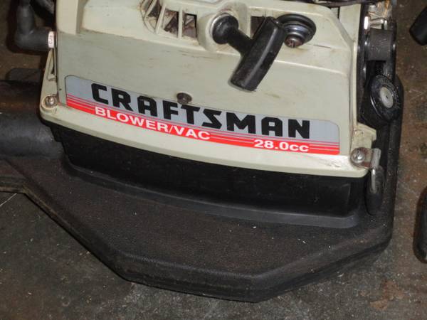 B) Vintage Sears Craftsman handheld leaf blower/vac. 28cc, 40:1 oil mix. Model: 358.796982, Serial: 1F2022387. Fresh from long term inside storage. Also started on spray ether.
