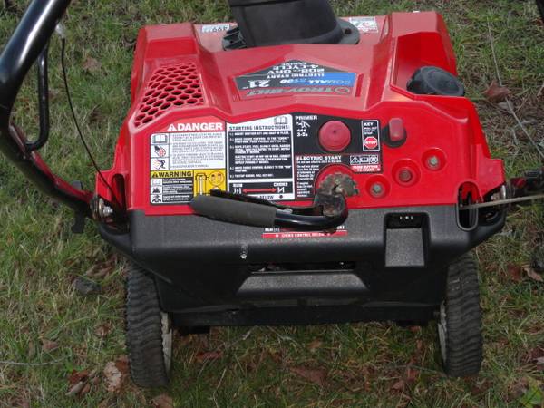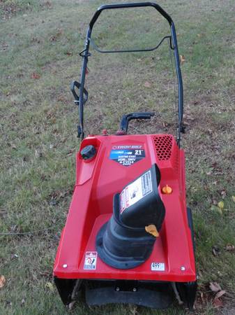 This is a nice Troy Bilt 4 cycle 21" single stage snowblower. Freshly serviced.